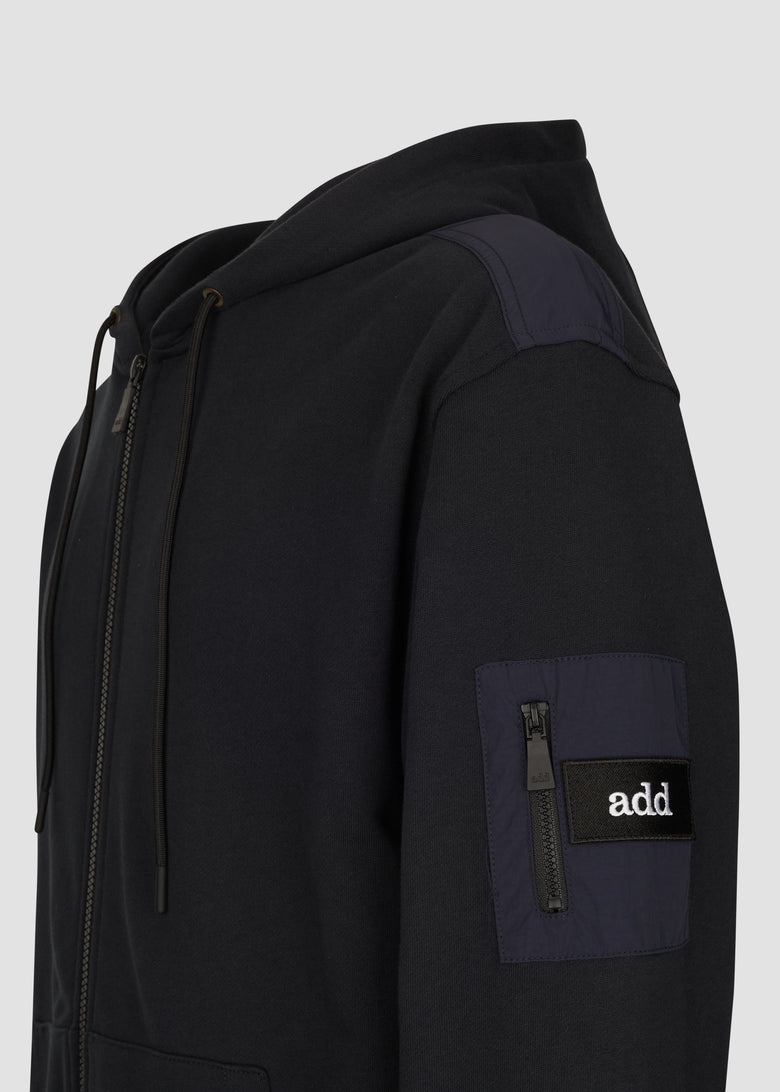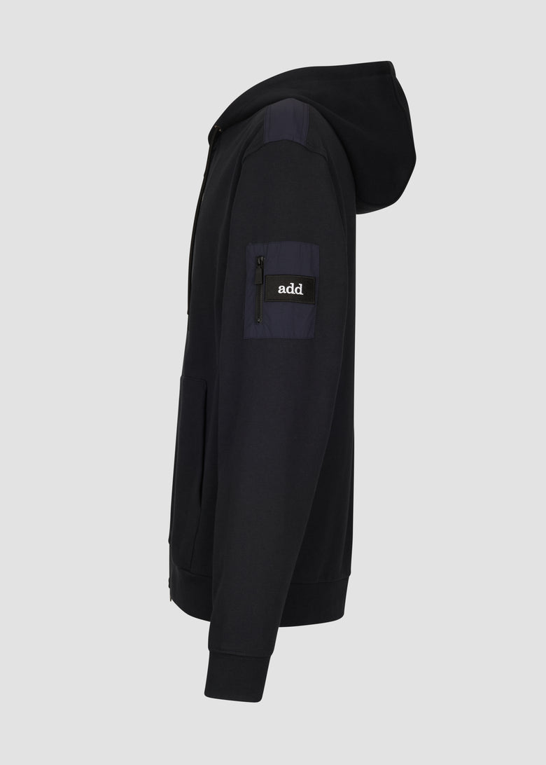 • Nylon pocket on the sleeve with die-cast zipper add®