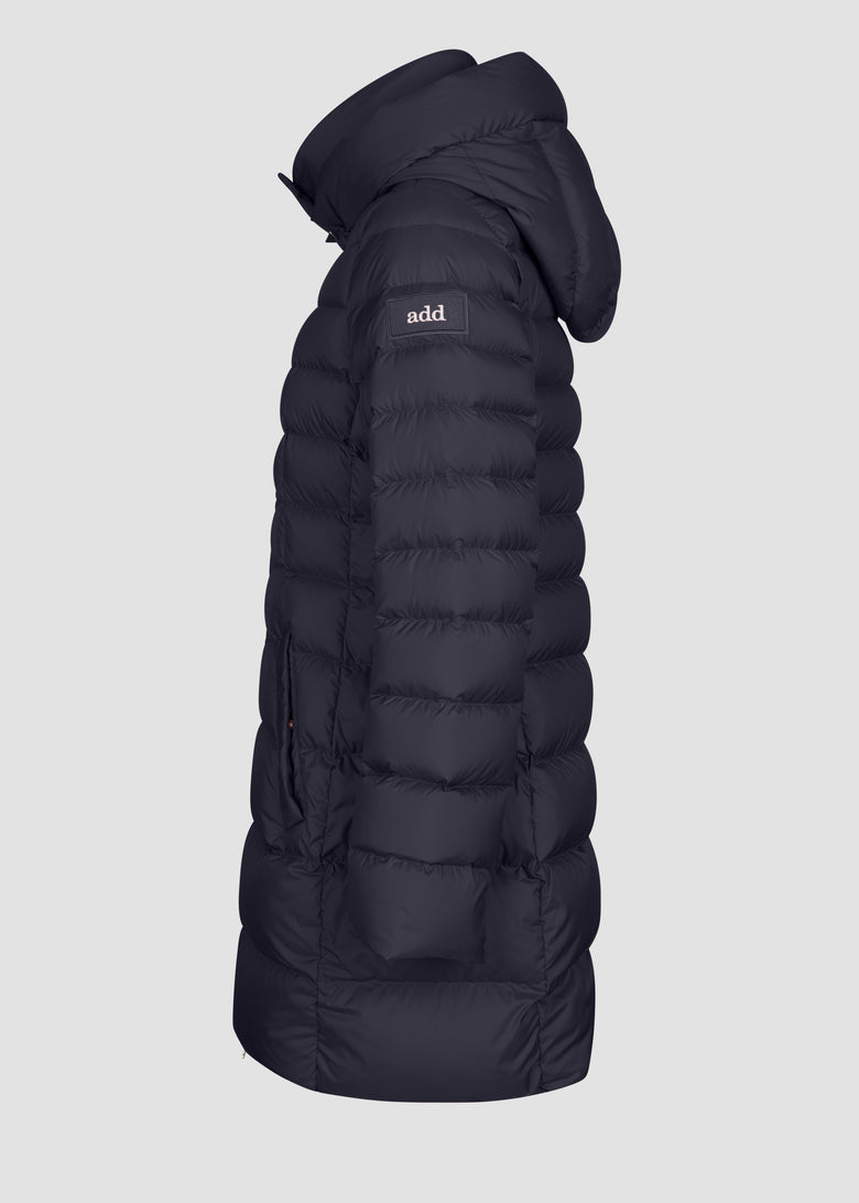 • Add® double-slider metal zipper front closure Zipper cover flap on collar with add® snap buttons