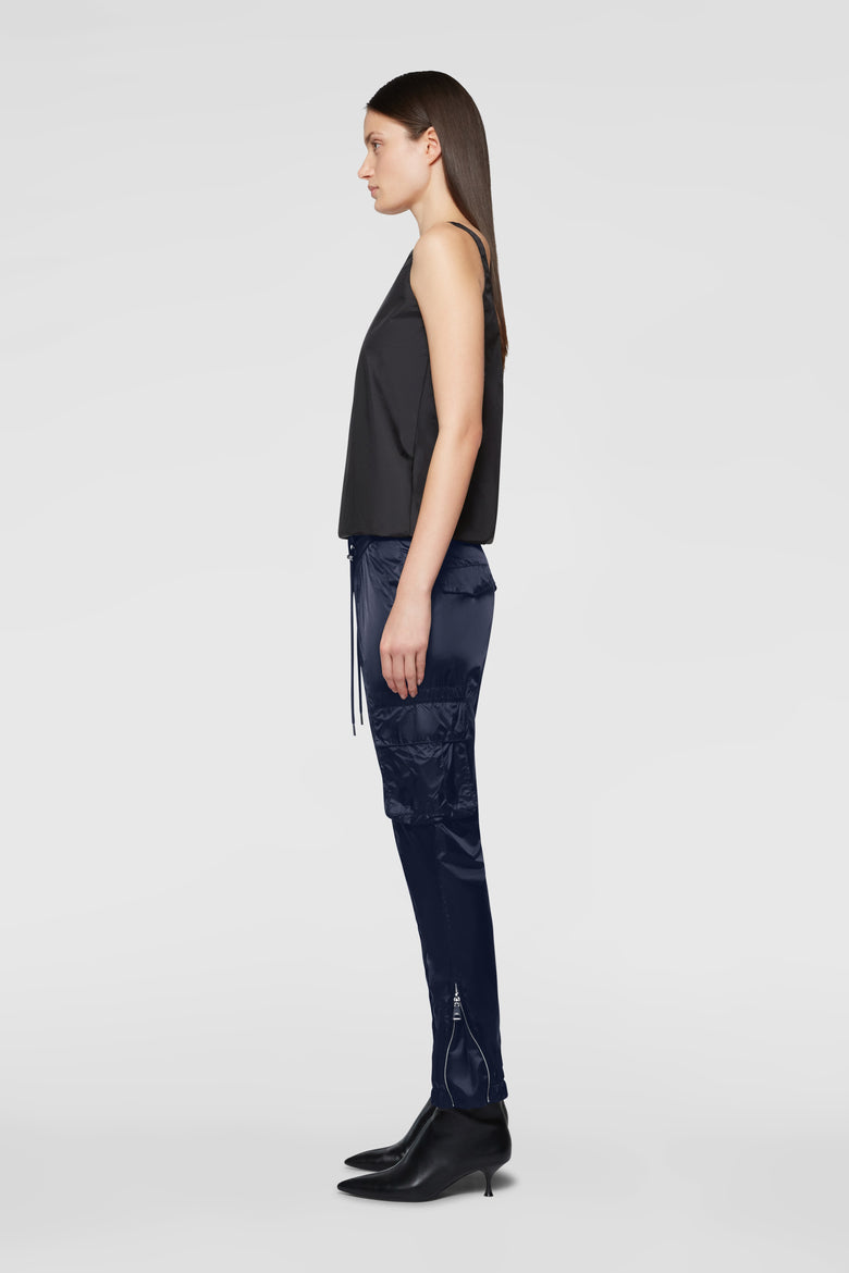 • Chiusura frontale con zip in metallo add® e bottone automatico add®Apertura tasche lateraliRegolazione in vita con laccio tecnicoTasche a pattina dietro Tasche cargo sui lati Orlo elasticizzato Apertura fondo con zip in metallo add®Vestibilità regular