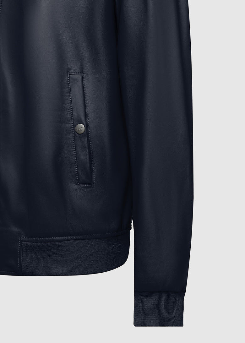Il bomber in pelle d'agnello add® unisce design sofisticato e praticità. Con una fodera in jersey per il corpo e il cappuccio e una raffinata maglia in misto viscosa stretch per le maniche, questa giacca è realizzata per garantire comfort e protezione. La chiusura frontale con zip metallica a doppio cursore con logo add® e le maxi tasche ne aumentano la funzionalità. Le tasche interne assicurano la sicurezza dei vostri oggetti essenziali, mentre la regolazione con coulisse sul cappuccio e sull'orlo garantisce una vestibilità perfetta. La vestibilità regolare completa il look. Questa esclusiva giacca in pelle di agnello è dotata anche di una tasca interna per il cellulare che protegge dalle onde elettromagnetiche senza comprometterne l'utilizzo.