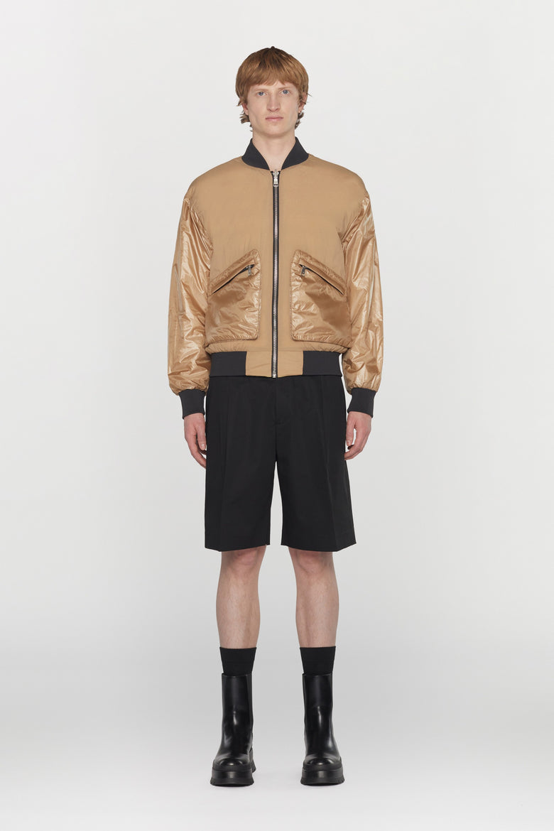 • Lato liscio in tessuto principale NYLON DULL con tasche e maniche in nylon lucido. Tasche applicate con zip in metallo