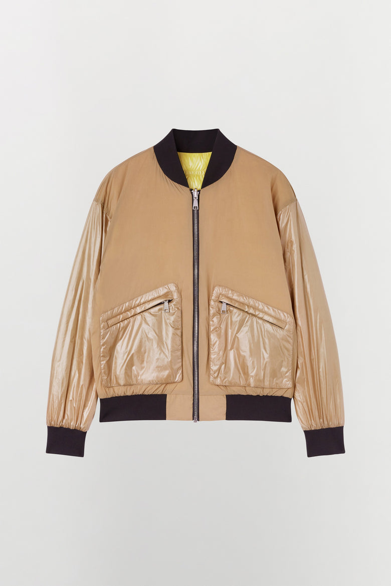 Bomber reversibile in tessuto tecnico idrorepellente con dettagli a costine