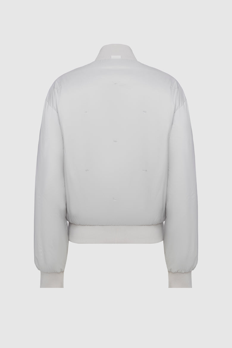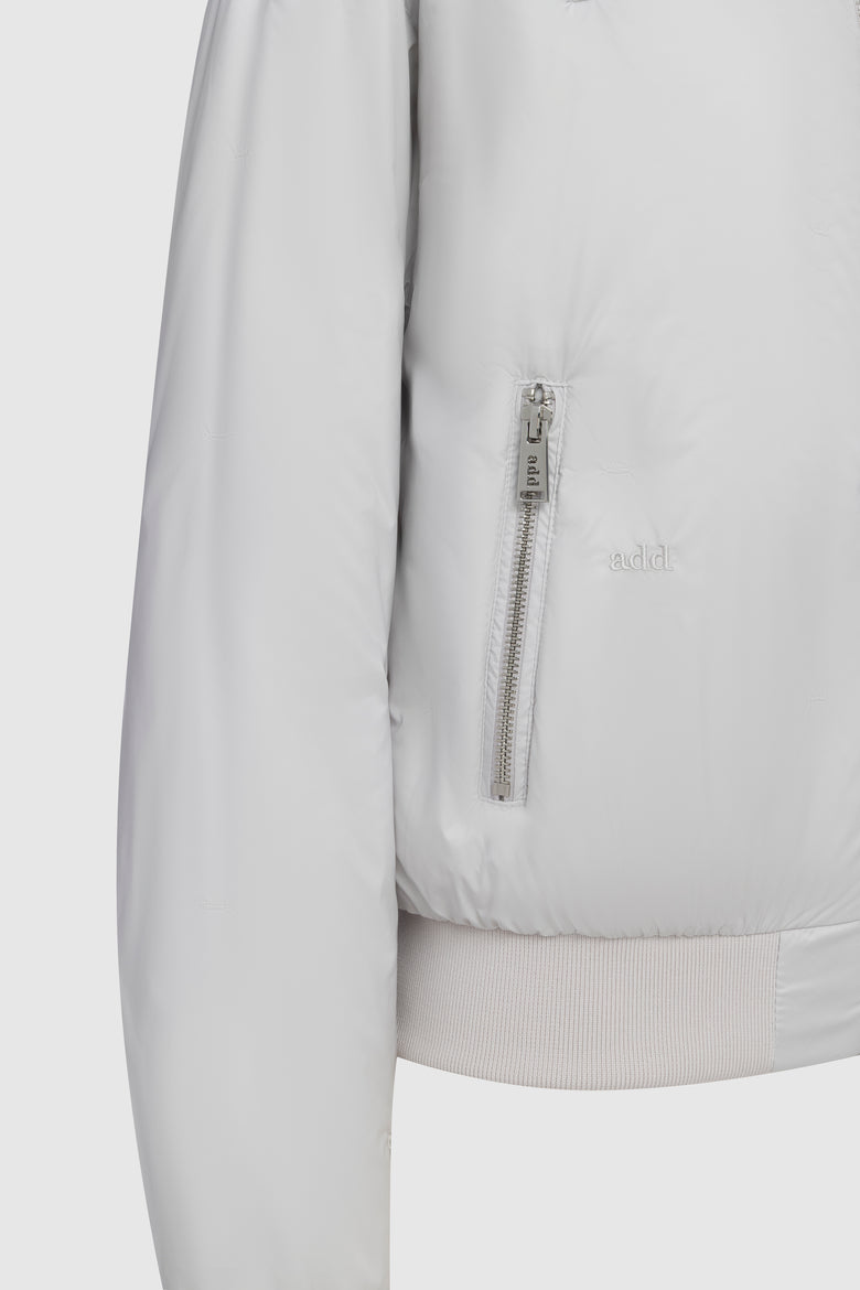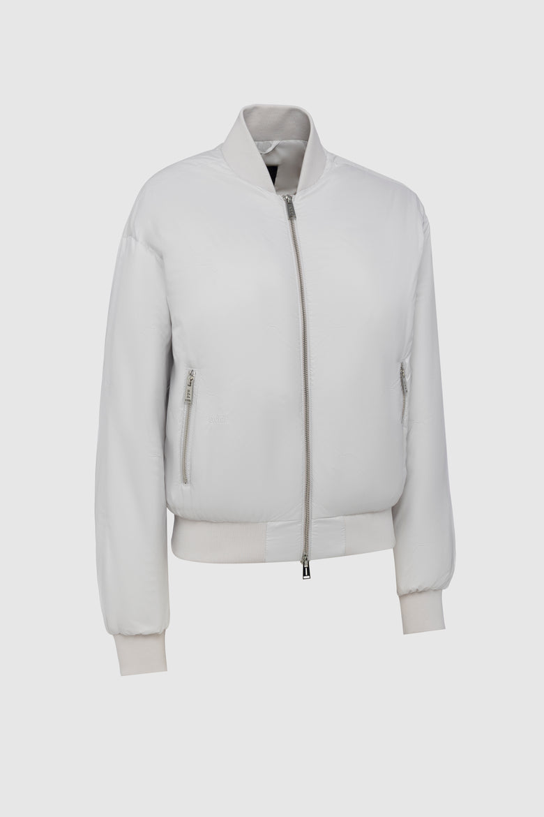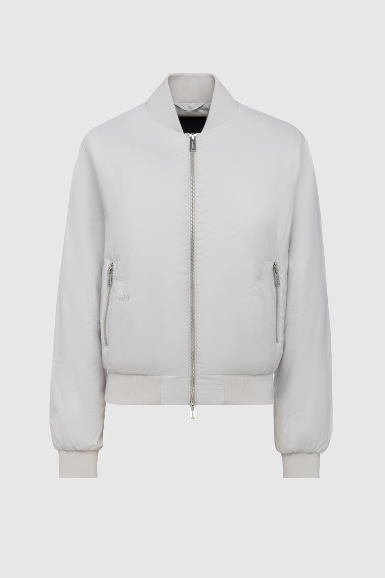 • This down Jacquard Bomber jacket melts elegance, modernity and comfort fit. Made of 100% ultralight nylon, at only 50gr, with a matt, water-repellent and waterproof finish, it is perfect for light rain. The regular fit, technical rib collar, cuffs and hem, together with the double-slider metal zip, enhance the contemporary design. The inside mobile phone pocket protects against electromagnetic waves without compromising its use.