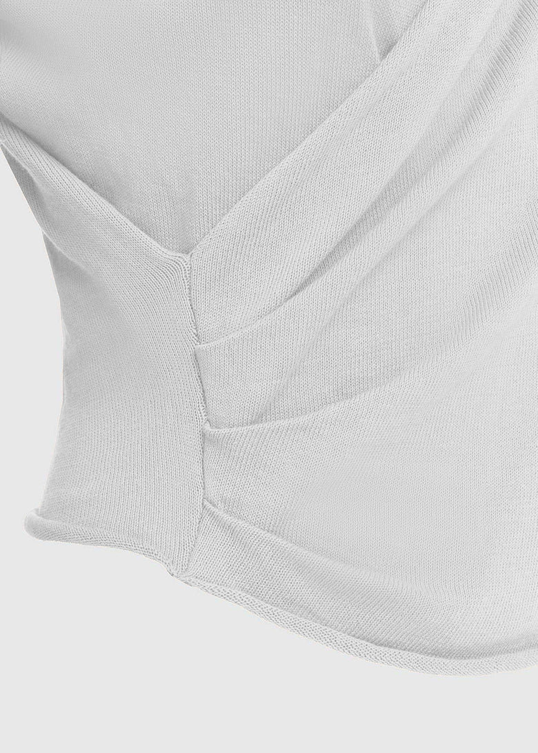 Women's Daily Fresh Knitwear cross-over top, cotton crêpe, gauge 12. Lightweight, breathable and with an elegant crepe feel, perfect for every season. The short design, shawl/cap collar and crossover front offer a sophisticated and original silhouette. The long sleeves and simple cuffed hem provide a slim fit that flatters the figure. The slightly dropped shoulders add a relaxed yet elegant detail to this comfortable top, versatile and ideal for a minimal yet chic look.