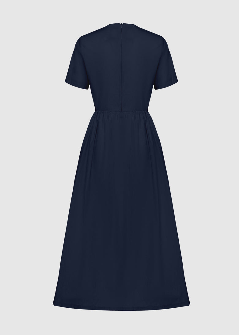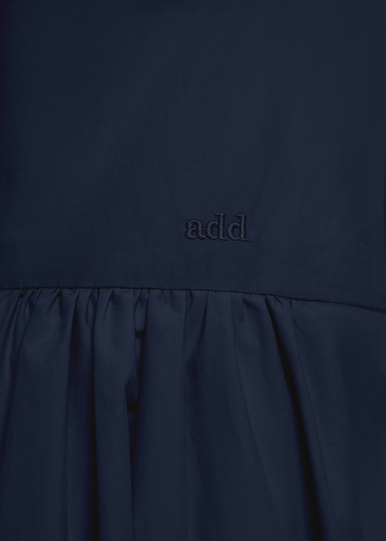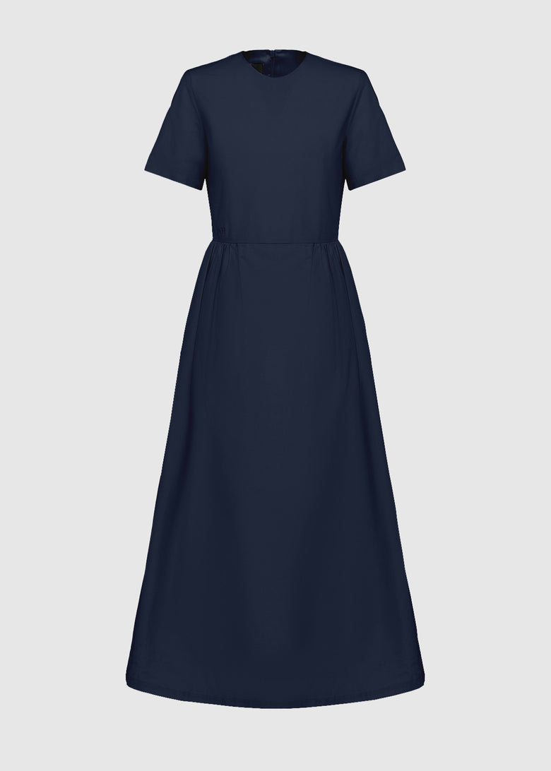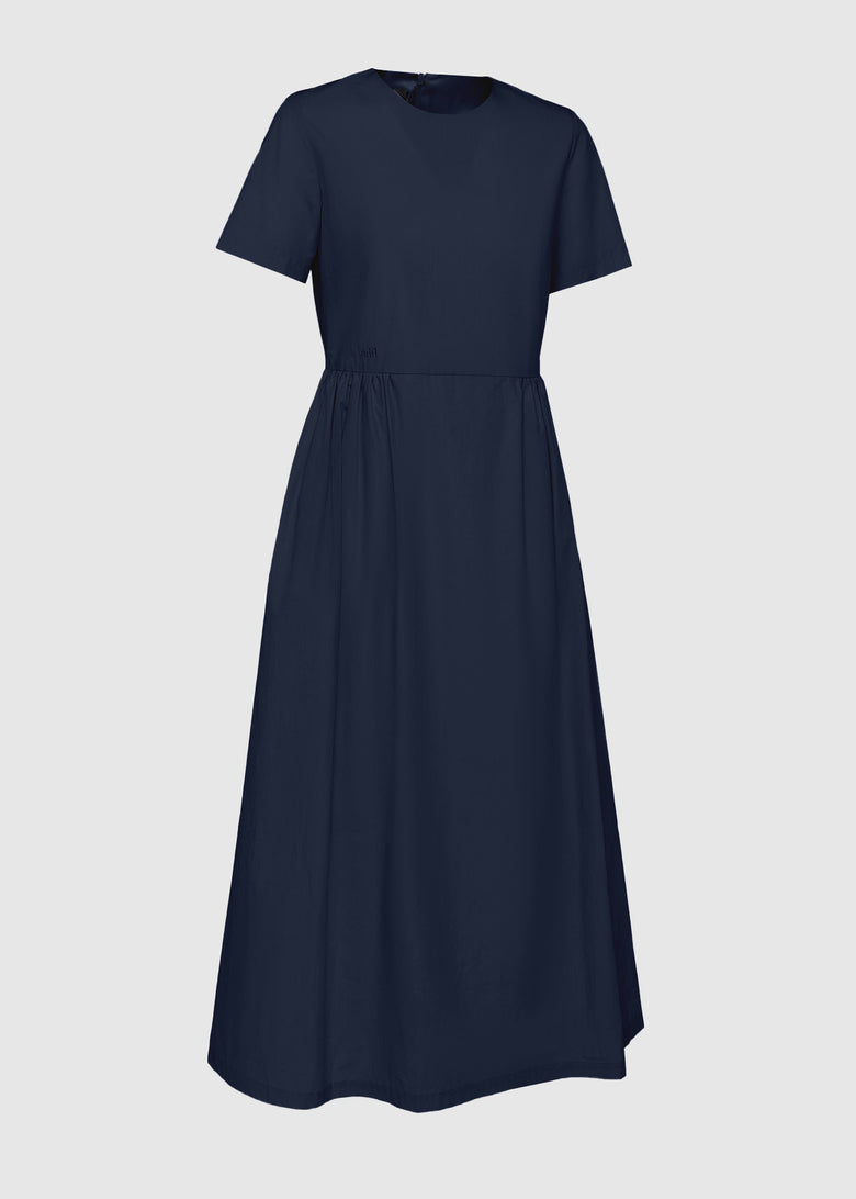 Women's dress in fine cotton poplin, perfect for a sophisticated and timeless look. The light and breathable fabric gives a fresh feeling, while the regular fit enhances the silhouette with natural elegance. The minimal design is embellished with a concealed back zip fastening, an essential crew neck and short sleeves. The boxy shaped top ensures comfort and a perfect fit, while the flared skirt creates a harmonious movement. The embroidered add® logo finishes the design with an exclusive detail. Ideal for day and evening, between style and versatility.