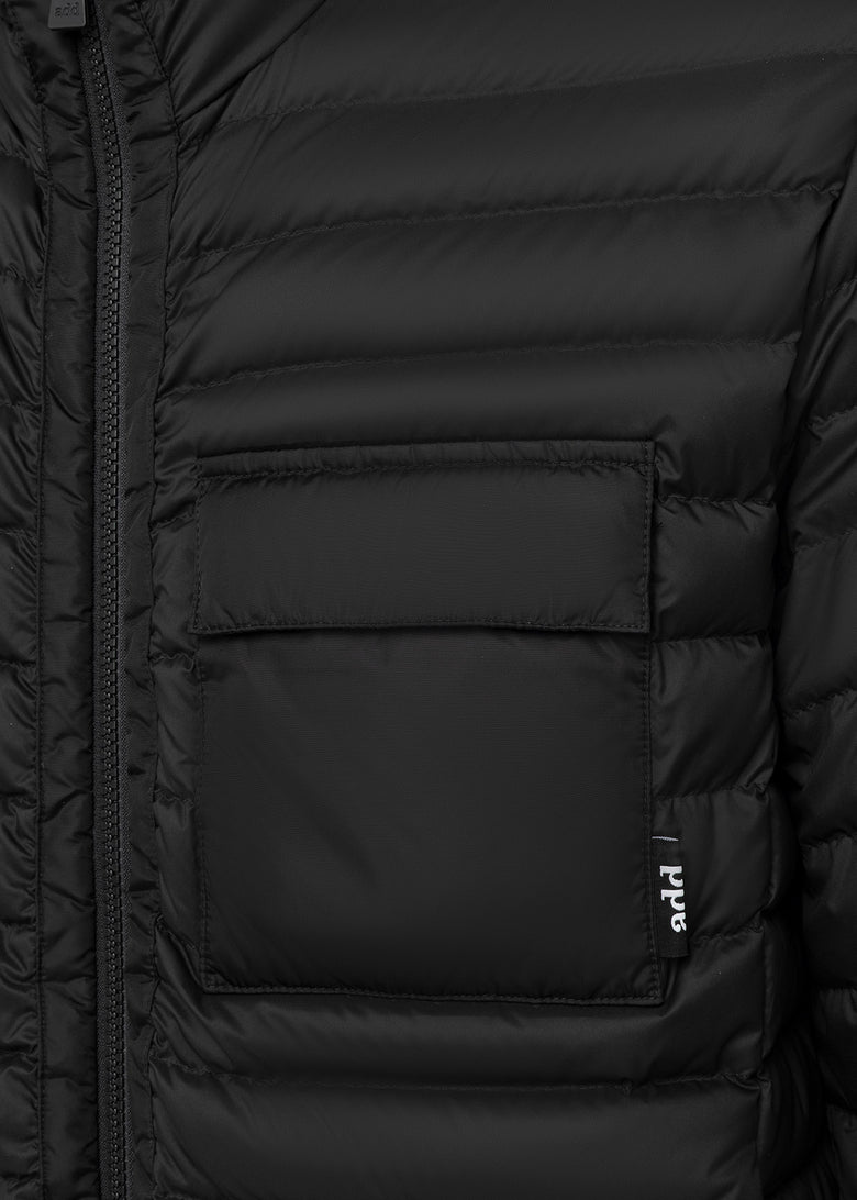 • Add® lightweight biker jacket, crafted from the exclusive cocoon fabric, a symbol of add® lightness and innovation. This ultra-soft, water-repellent, and lightweight material ensures maximum comfort and functionality. The 100g padding provides warmth without bulk, while contrasting shiny nylon details enhance its modern design.||Featuring a double-slider zip closure and a mobile phone pocket that protects against electromagnetic waves without compromising its use, it combines practicality and protection. A stretch grosgrain hem ensures a comfortable, regular fit.||Distinctive add® branding completes the look, making it the perfect balance of technical performance and contemporary elegance.