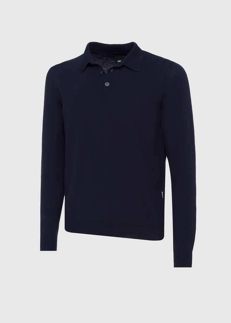 The add® long-sleeved polo shirt is an essential garment for a simple and refined look. Made of cotton crêpe, gauge 12, it has a ribbed collar and 4-hole add® buttons for comfort and style. The bottom of the garment and the bottom of the sleeve are finished with single rib. The decorative drop-needle stitch at the centre back adds a distinctive detail. The regular fit offers perfect comfort for everyday wear. This shirt is ideal for those looking for a versatile, high-quality garment.