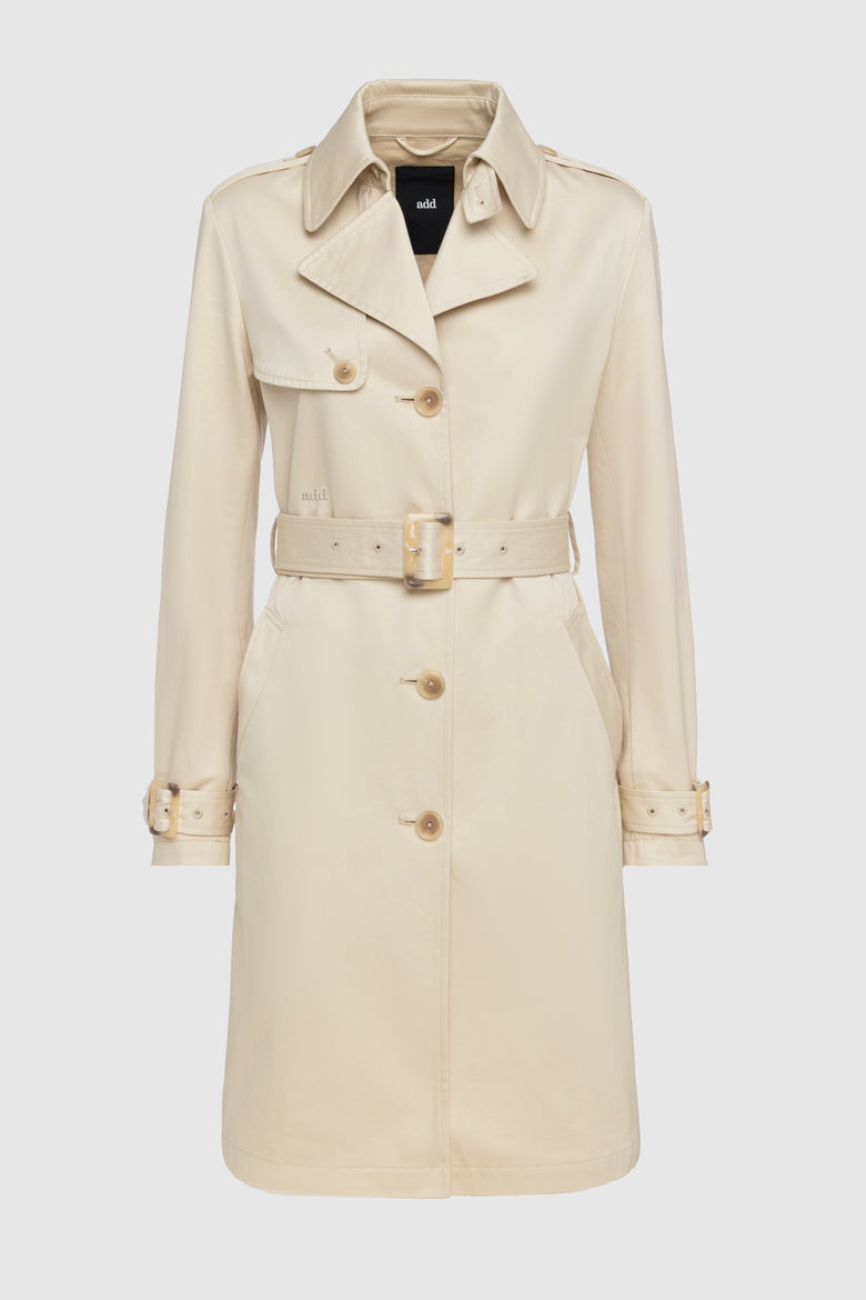 • Iconic and timeless, the add® single-breasted trench coat is the perfect garment for tackling the mid-seasons with style and elegance. The regular fit, the belt with buckle at the waist and the tailored details such as the straps on the shoulders and cuffs enhance its refined design. Functional and versatile, it features side welt pockets, a back vent for maximum comfort and the add® performance label, a guarantee of quality and resistance. The embroidered logo signs the authenticity of a must-have that combines tradition and innovation, perfect for every occasion, from the city to travel.